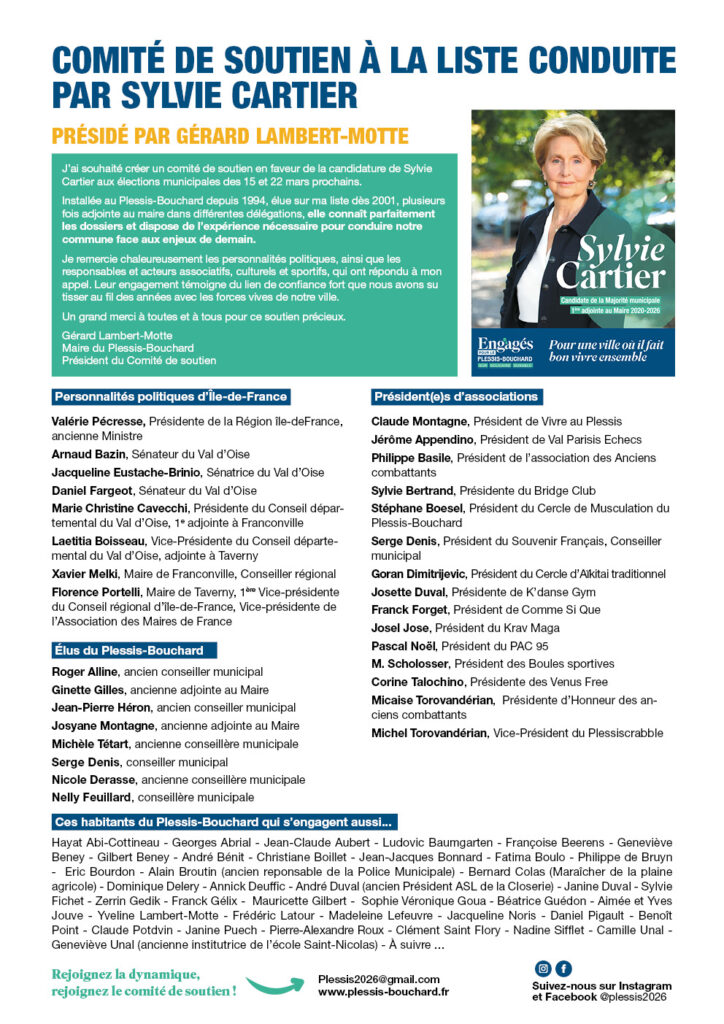 Merci à tous ceux qui nous apportent leur soutien. Si nous avons oublié votre nom ou si vous souhaitez une rectification, envoyez un e-mail à : plessis2026@gmail.com